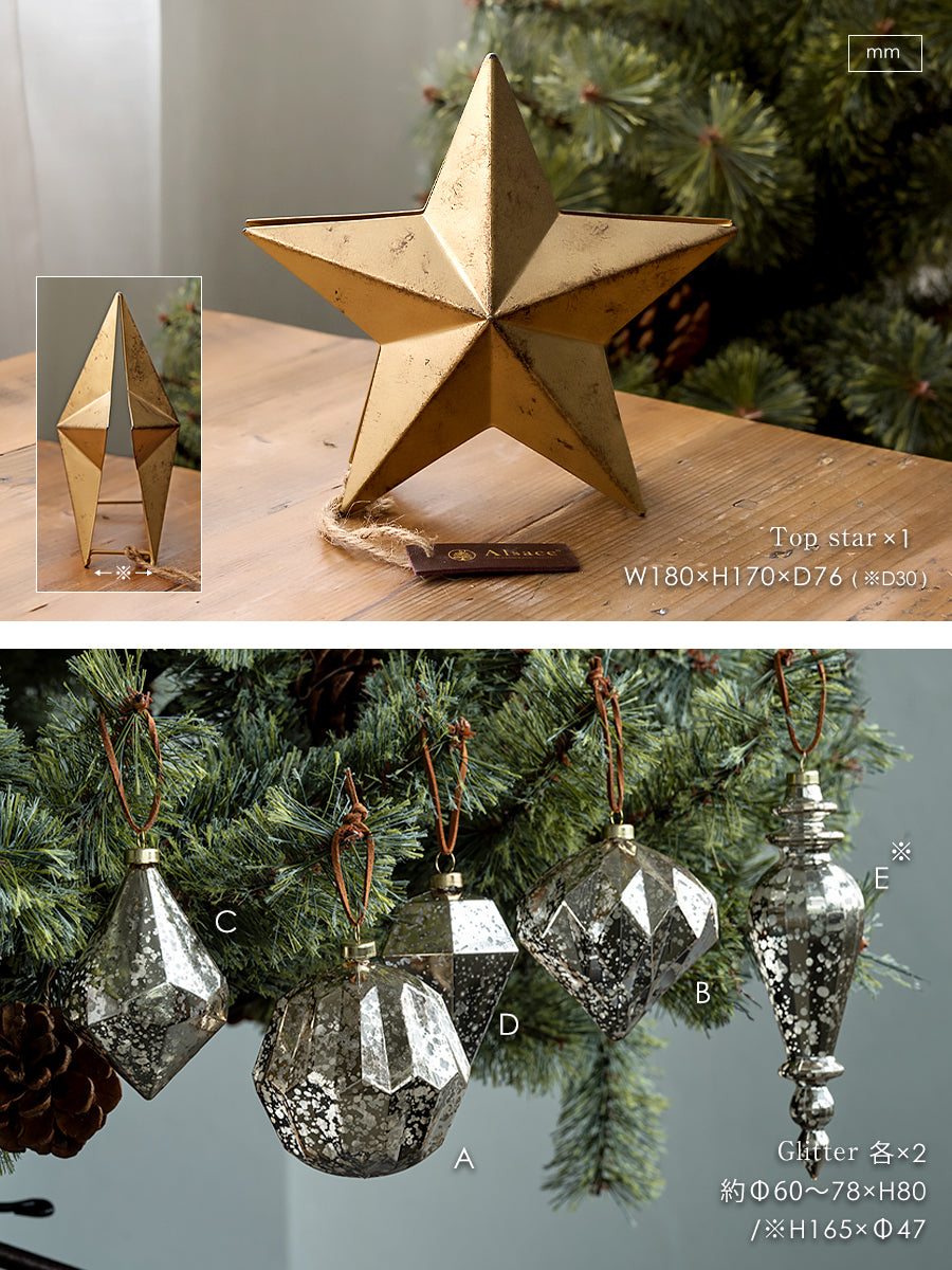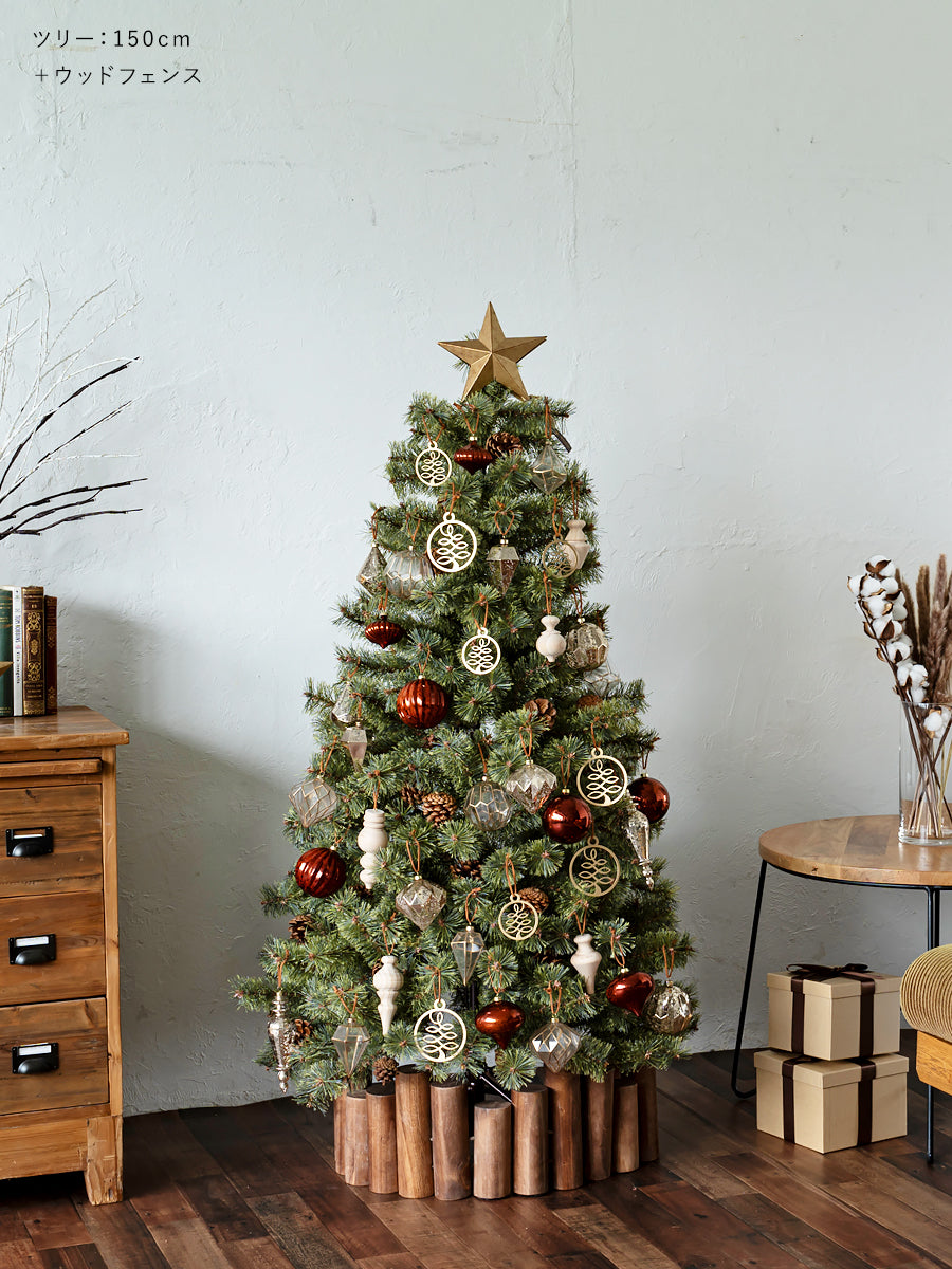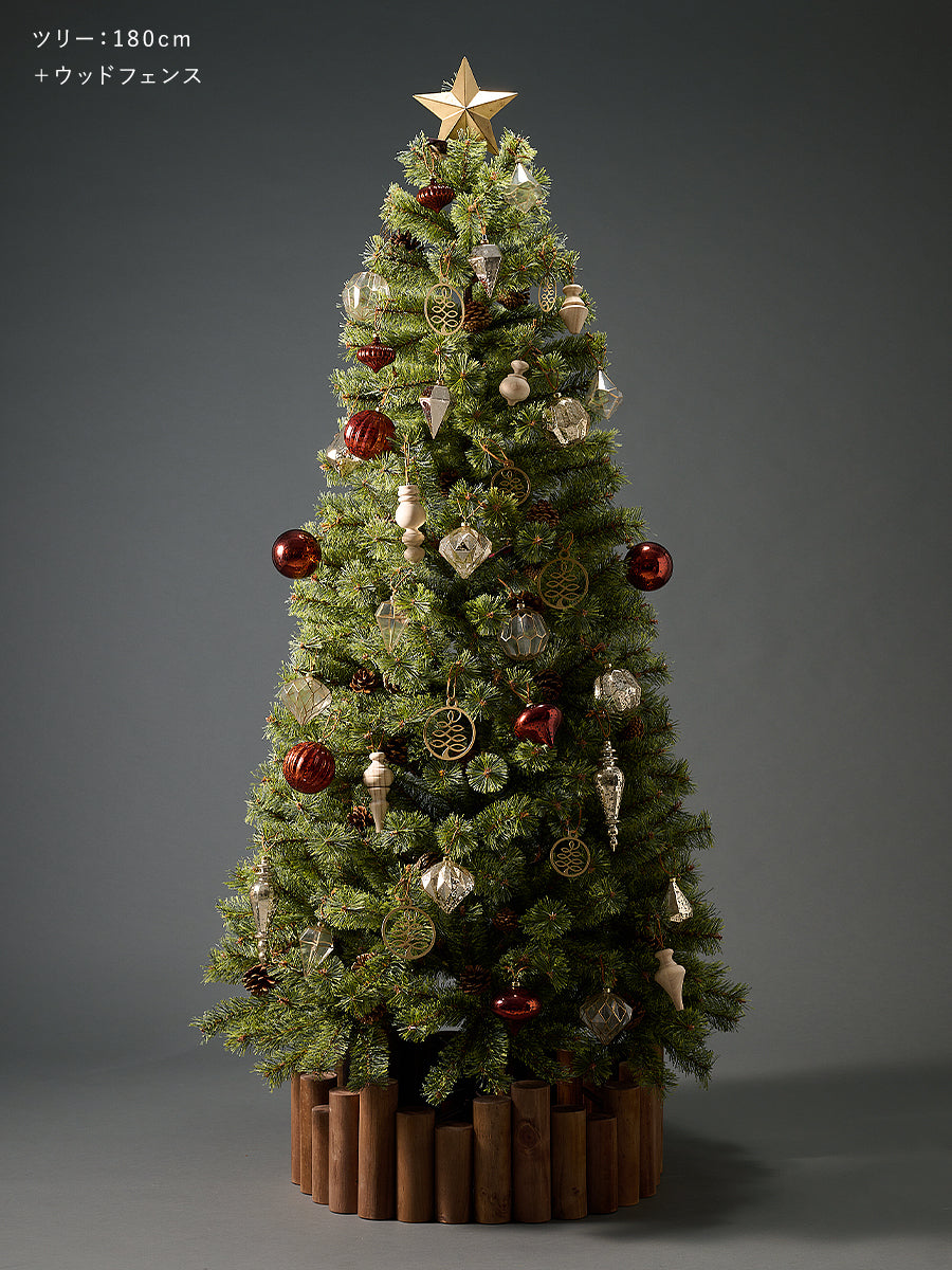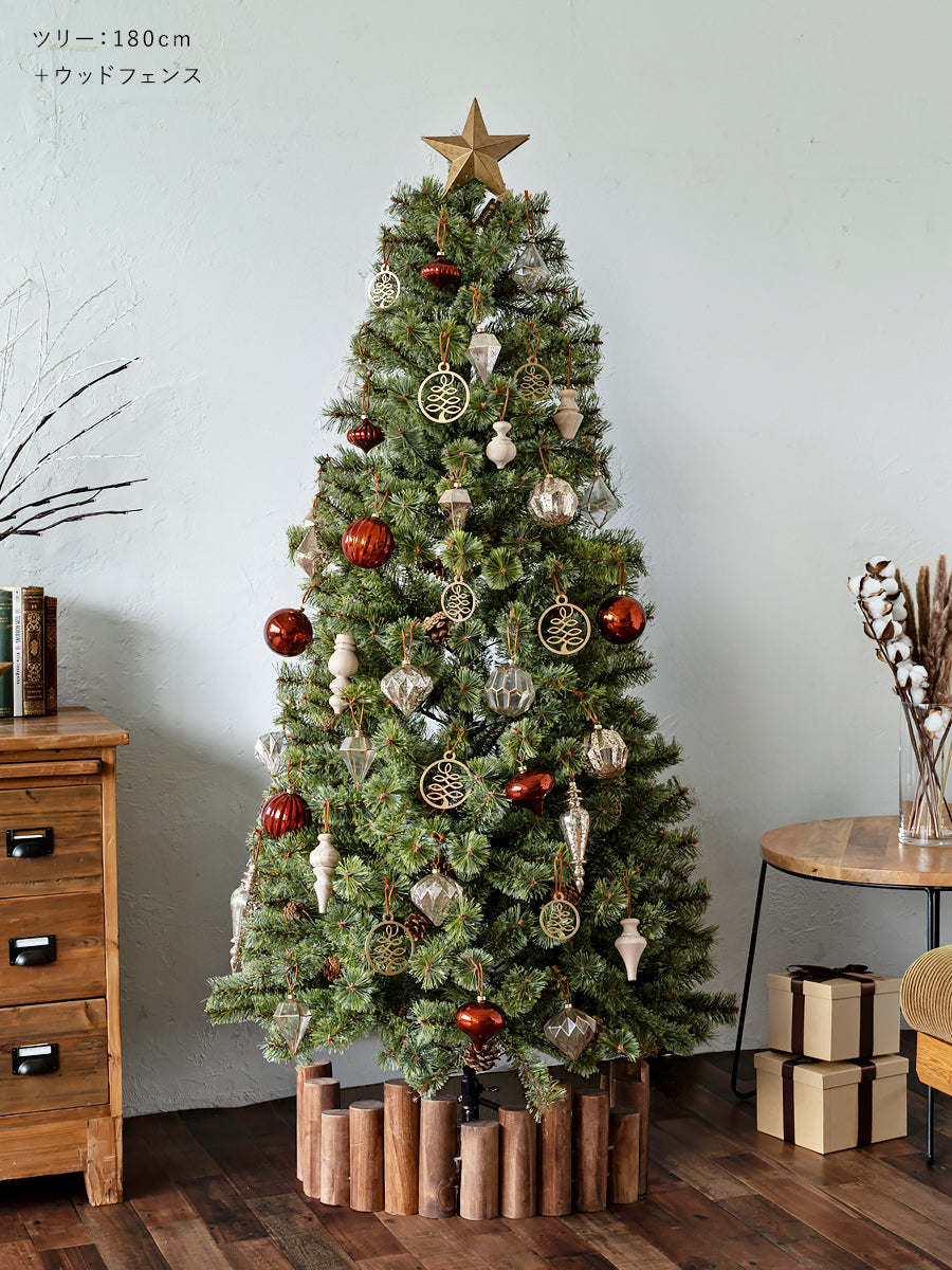 150cm180cmなどの表記は実寸ですか? ツリー先端部の枝葉を真っ直ぐ伸ばして表記のサイズとなります。おおよそのサイズになり±3cmの誤差があります。