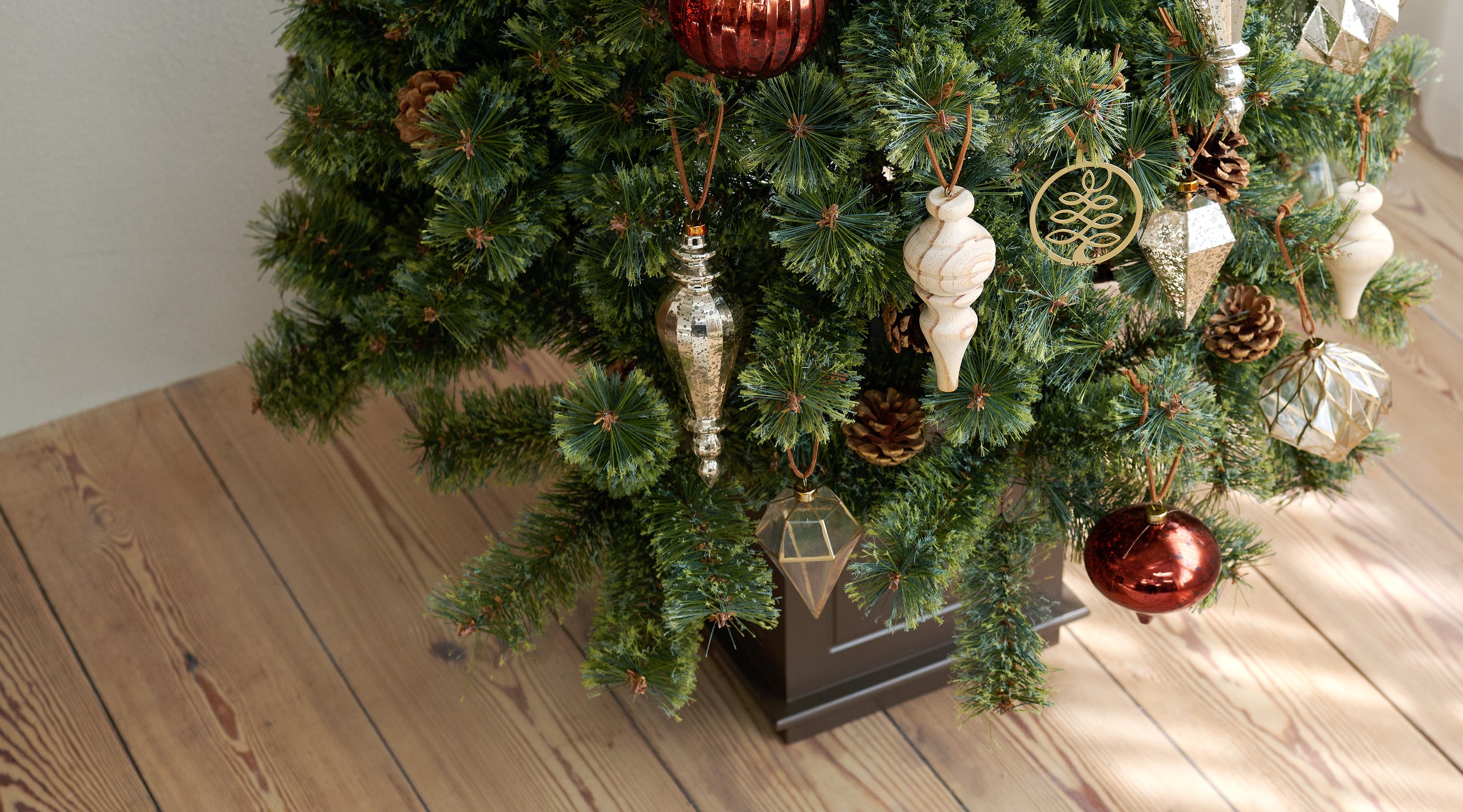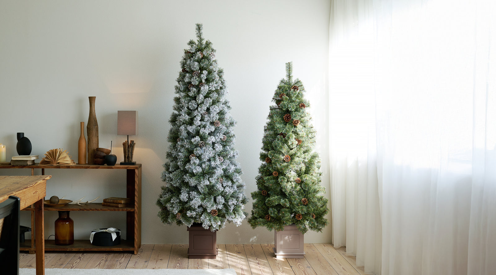 ツリーのデコレーションの可能性は無限大です。王道の赤を基調にしたスタイル、白銀が映えるホワイトクリスマス、ゴールドやブロンズが魅せるラグジュアリーな装い。アルザスのポットツリーはそのすべてを引き上げ、空間全体を格上げし、上質なインテリアへと仕立ててくれます。